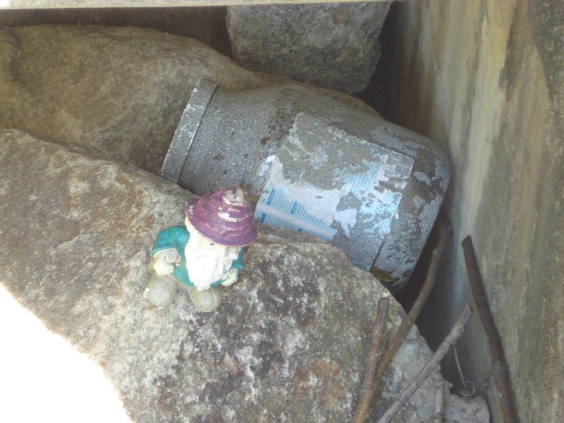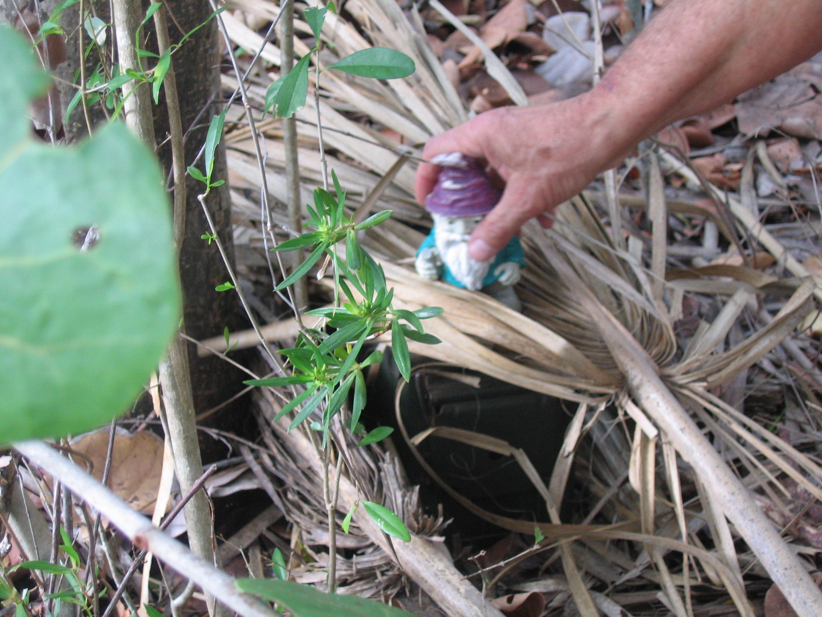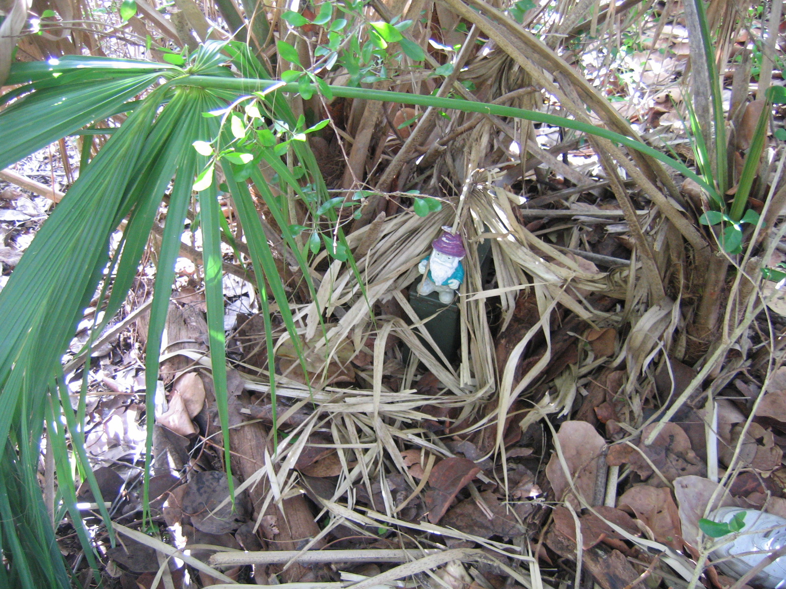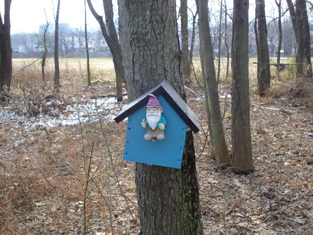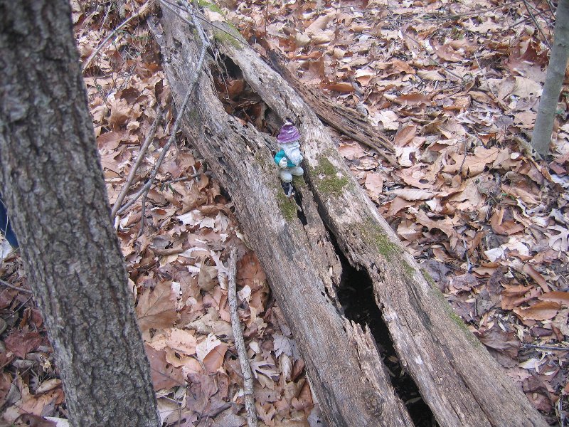 Cache is biggish plastic comtainer painted brown with a screw-top lid. This is the replacement cache for the thrice-muggled Springfield Travel Bug Hotel (GCXHC2) and it is the sister cache to the North Shore Travel Bug Hotel (GCT770) and the Ox Road Travel Bug Hotel (GC11177).