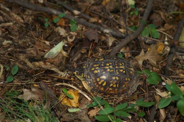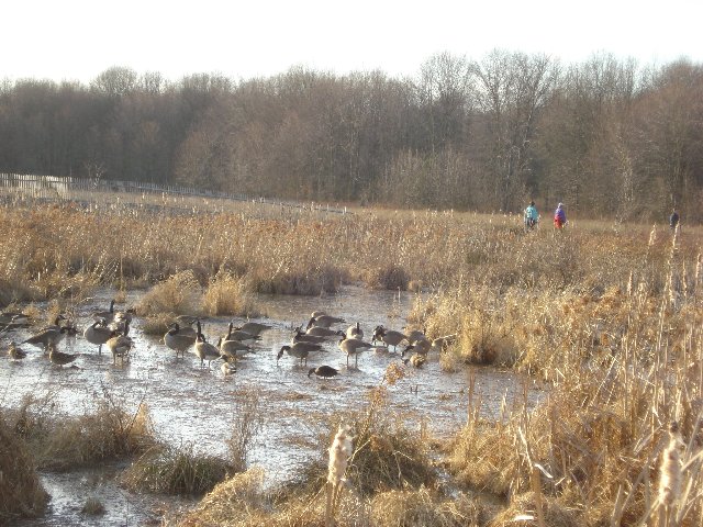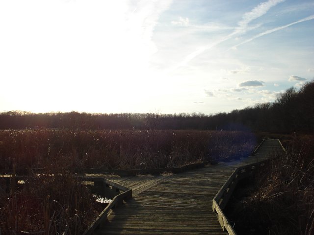 This is a 1.5 mile round trip stroll from the parking lot. Trails lead past the nature center, through the woods, along a raised boardwalk path through the wetlands to another section of woods. The cache is in the woods, past the wetlands and past the observation stand. Don't bushwhack through the wetlands please! Bring binoculars. Watch for turtles, water birds, frogs and deer. Unfortunately this end of the park does not welcome dogs although I've seen them there.