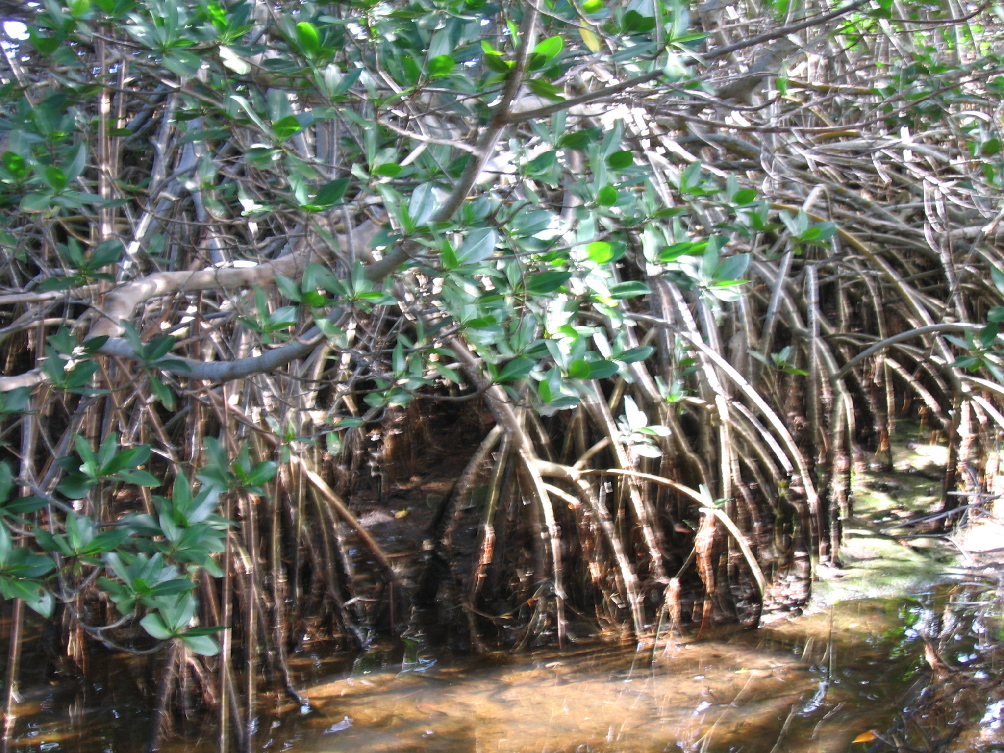 1. There are several types of mangroves on the island. What type of mangrove props itself above the water with stilt roots?