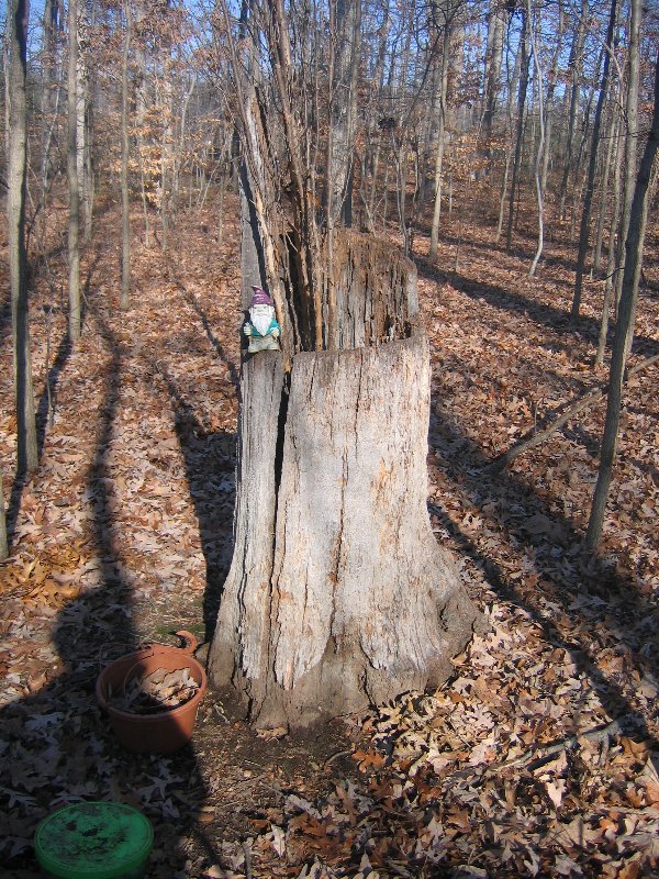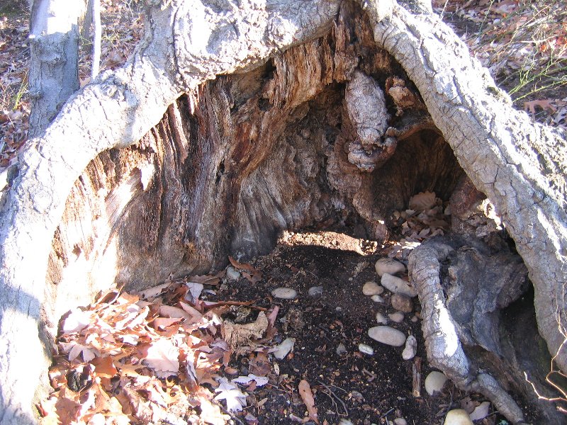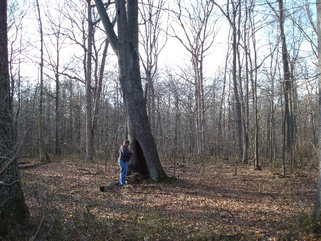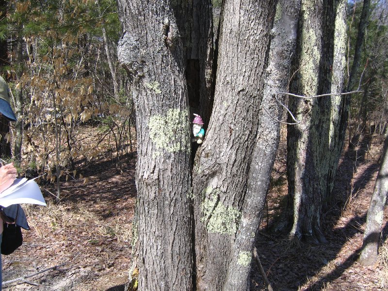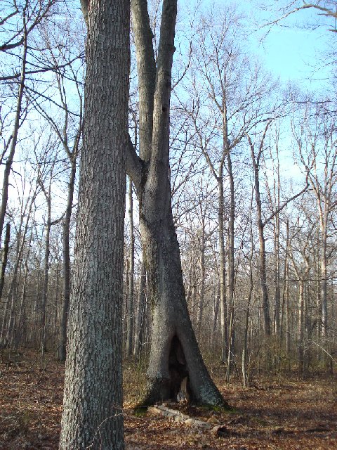 HINT: You really need to 'duck' as you traverse to this cache. Look around ground level in a tri-trunk tree Don't 'bust the branches' of the pines! Found March 11, 2007