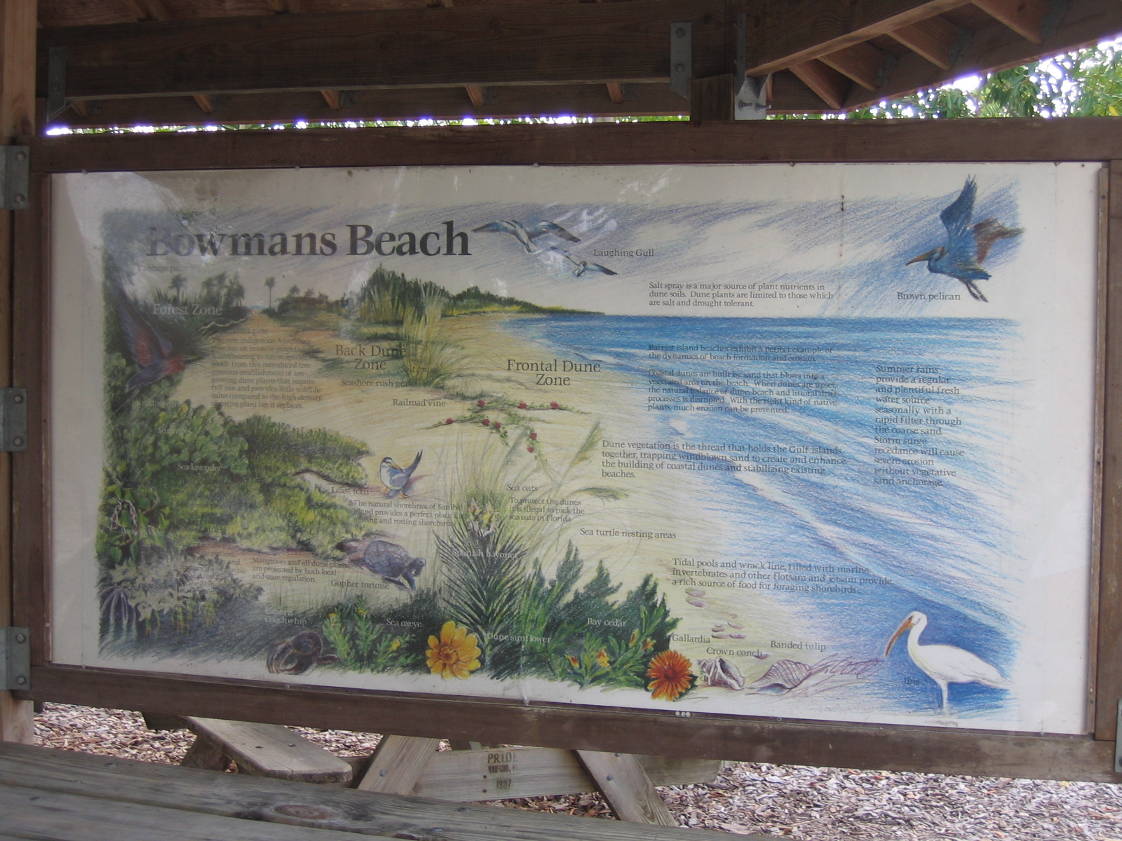 Just a short walk from Bowmans Beach parking lot. $2/hour to park. May want to wear more than beach shoes to locate (i.e., tennis or hiking shoes.) Lovely setting to observe wildlife and sunsets. This cache is located within a 5 minute walk of the Hop To It cache.