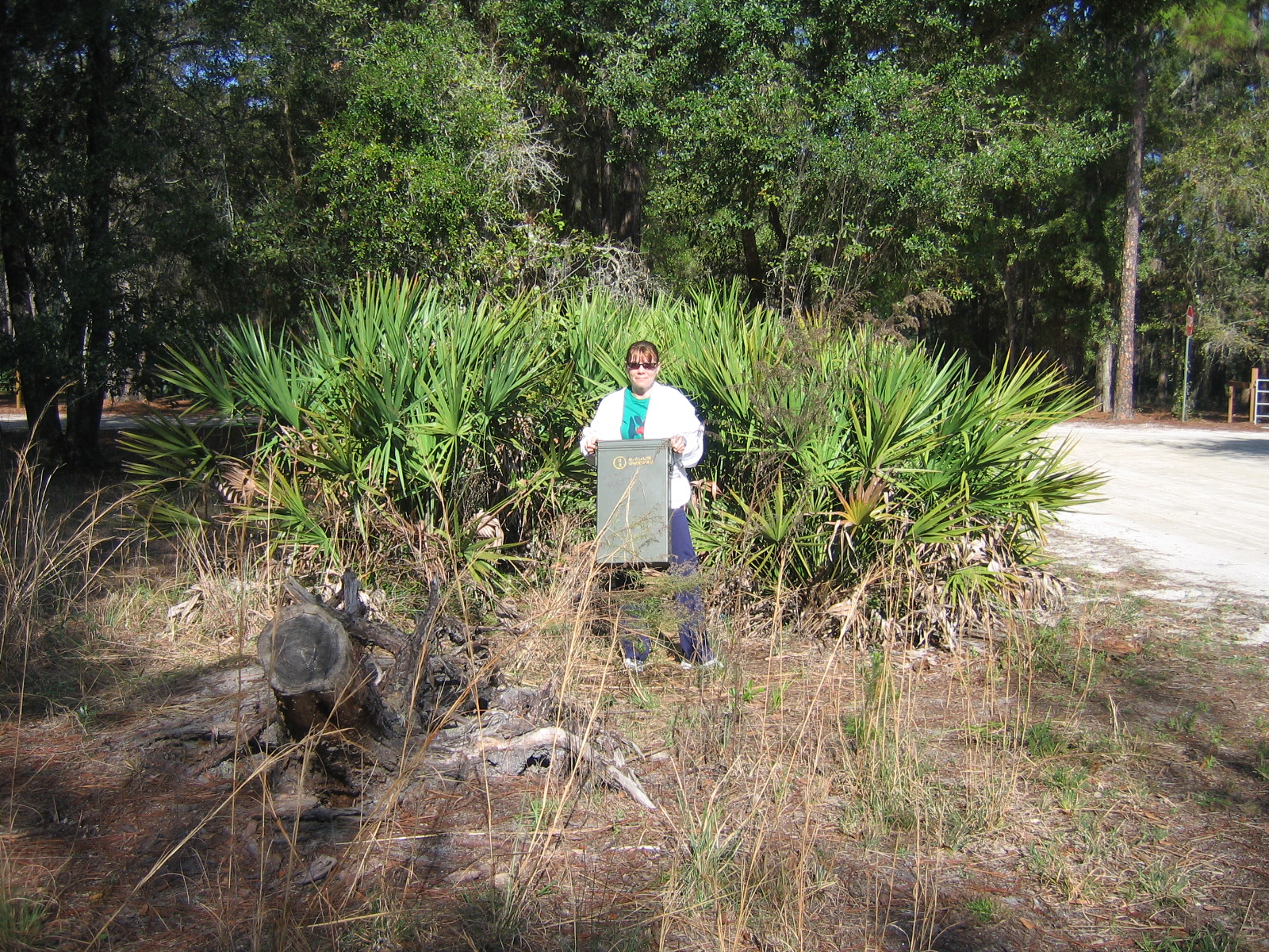 Hard, solid path all the way to the cache. Container is a Decon container. Bring your own pen. This is part of a series that I'm placing with the help of my wife, Jodster. You will find this cache in J.B. Starkey Park. Special thanks to park administration for allowing us to place these caches! Now, Jodster & myself are usually in the park either Saturday or Sunday. We keep an FRS radio with us & on. We monitor channels 2 & 12. So if you are in the park, have an FRS radio (Motorola Talkabout) & would like help or to meet, just give us a shout!