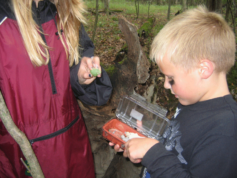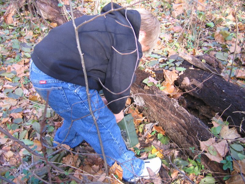 There is a hidden park near my school. Dad has a geocache here so I want mine here too. Small, narrow tupperware container - bring small items.