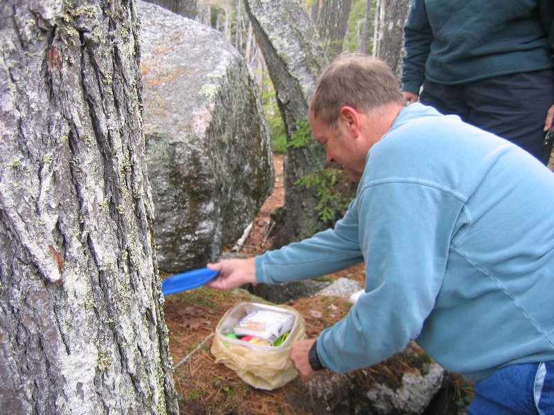 Cache is a 1 gallon rubbermaid plastic storage jar with a white screw on top. Is located at Wister Point in the Chamberlain-Reynolds Memorial Forest on the shore of Squam Lake. Park at either the East or West parking lots on College Road in Holderness, NH. This road is a short road that runs from NH 25B to Rte 3. Follow the trail posts that say "Beaches - Campsites" Cache is about 1 mile from the east parking lot. At the beach follow the trail to Wister point and Campsites 2,3,4. Their is a seasonal caretaker at a campsite to say hi to. The cache is pretty close to the shore but not close enough to be washed away. Head around the point after finding the cache and visit hidden cove. This area is a beautiful spot !!