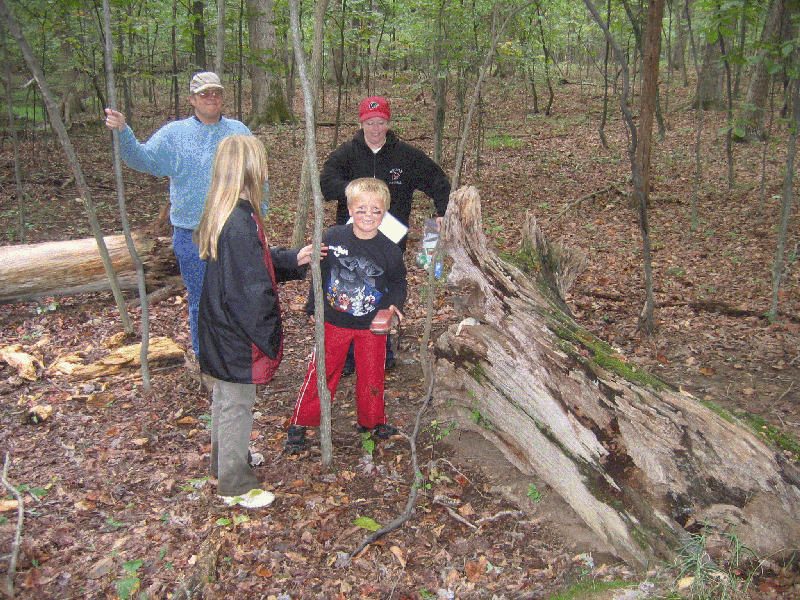 Saw two big bucks running thur the woods. Great walk up the woods and over the fallen trees. Counted 16 tires. Finally found it after walking around it for quite awhile. But we found it and left a Spiderman watch (probably needs battery). Great park area.
